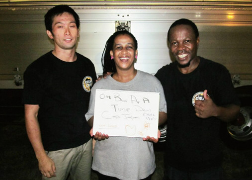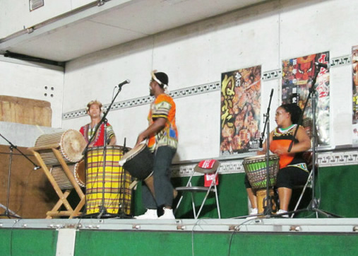ここで本場の太鼓の叩き方をみんなと一緒に楽しもう!と、ドラムカフェジャパンさんが来て下さいました。
