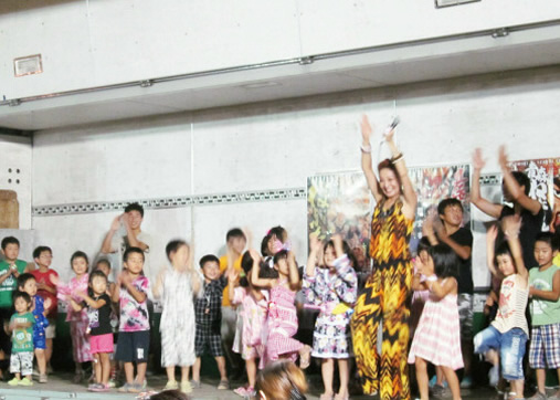 アンコールでは子ども達をステージに上げ、一緒にダンスして盛り上がりました!