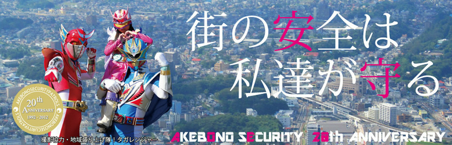 本年5月をもちまして、あけぼの警備は創業20周年を迎えることとなり ました。これもひとえに皆々様の御陰と深く感謝しております。