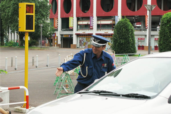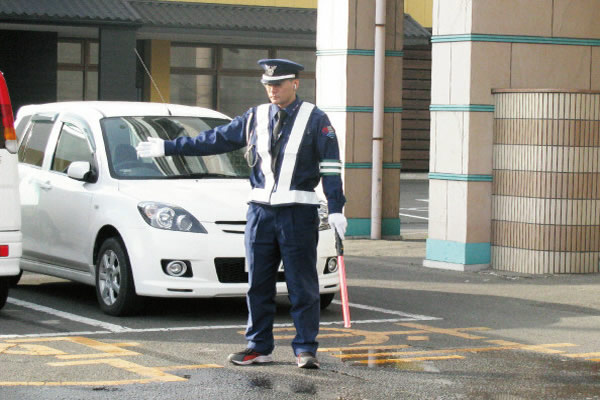 業務内容としては警備対象施設の駐車場や構内だけでなく、一般道路に面した出入り口付近等での誘導も確実に行う事で、近隣周辺道路の車両の混雑緩和・店舗前等においての歩行者と車両の事故を防止し、御客様に対して安心してお買い物を楽しんで頂くお手伝いを致します。